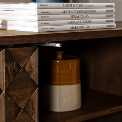 58″ Modern Boho Solid Pine Wood Closed Storage Sideboard Brown – Saracina Home