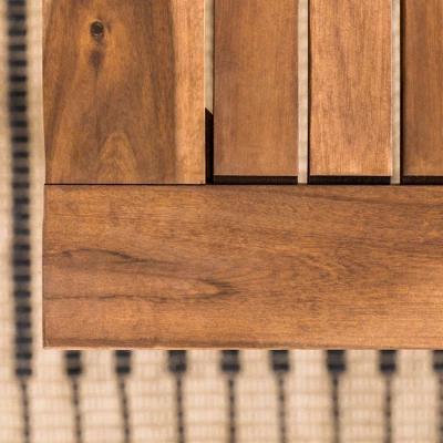 Create a simple yet inviting dining space on any deck or patio with this charming outdoor dining table. Constructed with a beautiful slatted surface from solid acacia hardwood, this table is naturally sturdy and stylish. If needed, place a large umbrella in the small, round opening in the center of the table for shade. Relax and enjoy the outdoors with this exceptional modern outdoor wood table.
