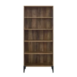 79″ Modern 6 Shelf With Metal Bar Bookcase Coastal Oak/Black – Saracina Home