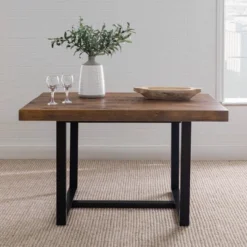 71″ Tanya Modern Farmhouse Metal Stretcher Dining Table Dark Brown Oak – Saracina Home