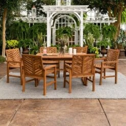 7pc Acacia Wood Patio Dining Set With Cushions – Saracina Home